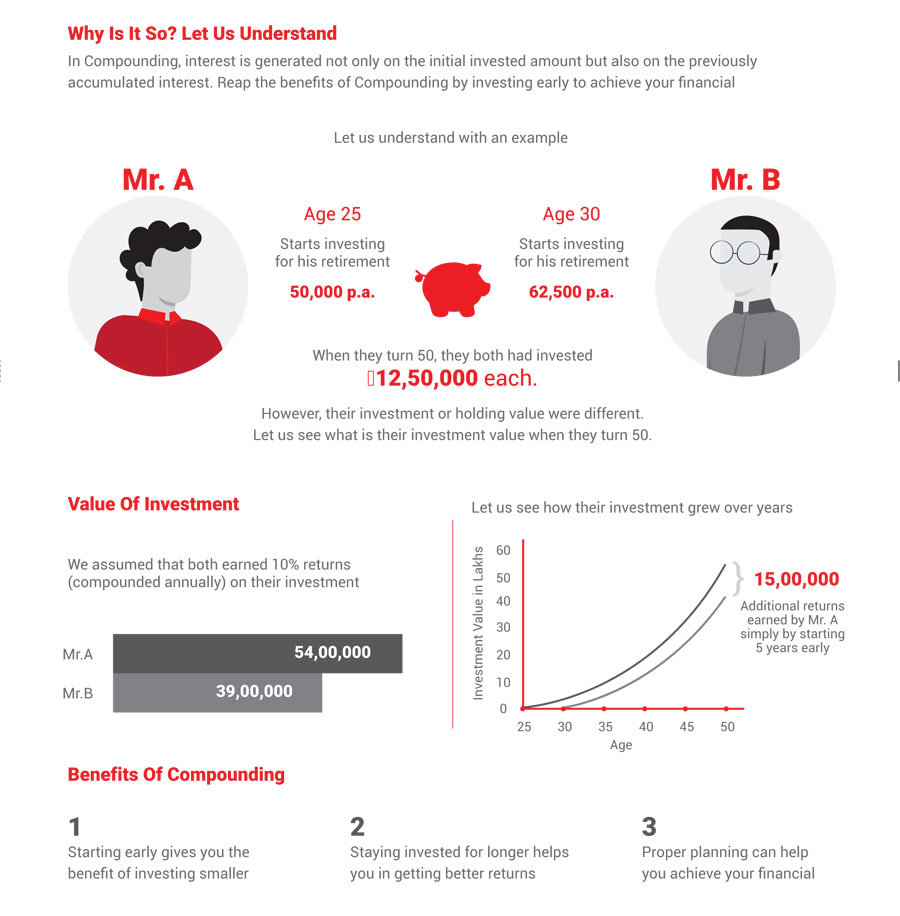Time is the best wealth creator - The earlier you start and longer you stay invested, the more rewarding it is! Hence avoid delays in investing.