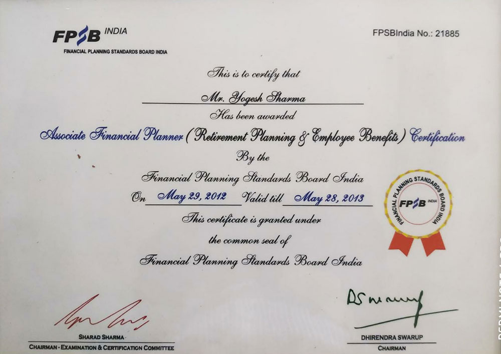 Yogesh Sharma was certified as an Associate Financial Planner.